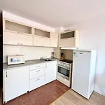 The apartment includes a balcony and a fully equipped kitchen with air conditioning for utmost comfort.